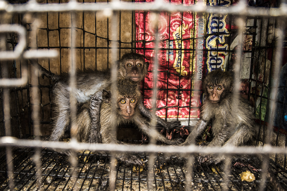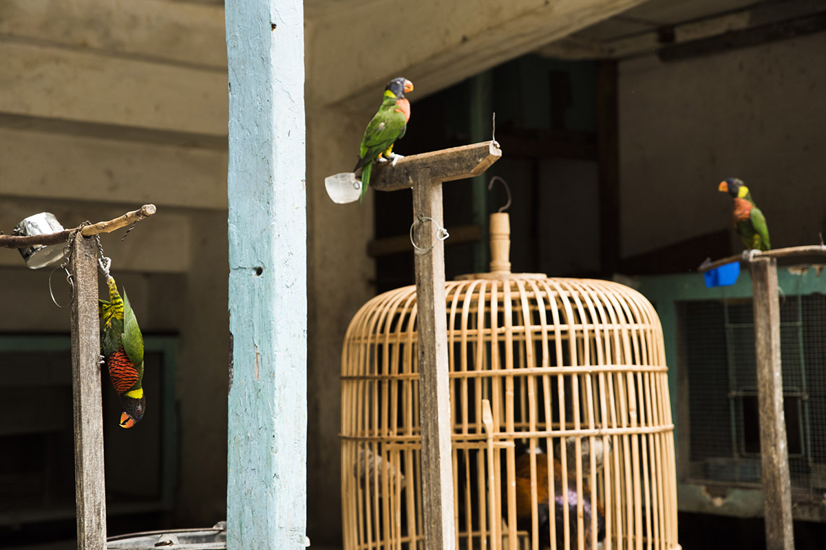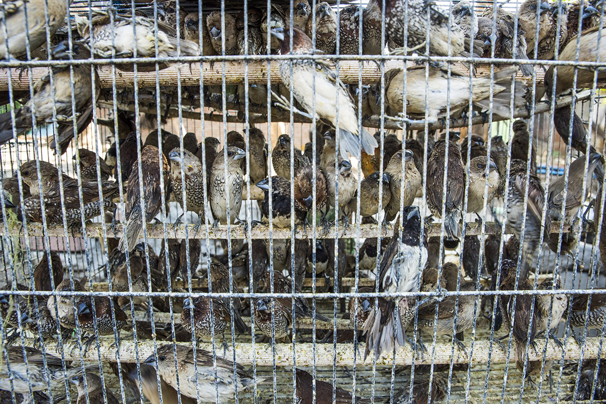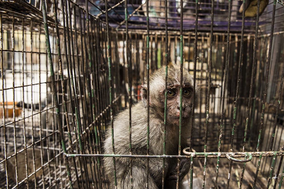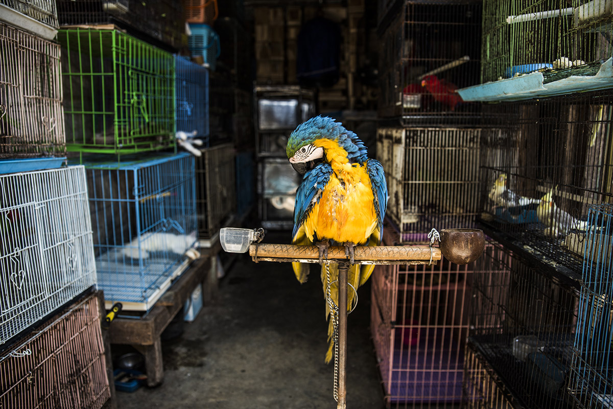 All kinds of animals can be found in the animal markets of Indonesia. These big galleries where animals are for sale are known as Pasar Burung – which means bird markets – and are very typical in some cities in the island of Java. In these places, the animals, which are packed together and treated poorly, await to be sold and taken to a home where they will be exposed. Although birds are the predominant animals, different species of mammals, reptiles and amphibians are also sold.