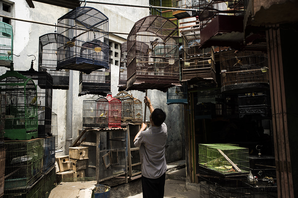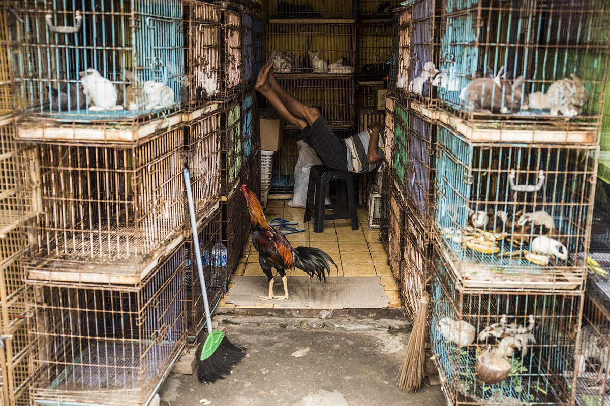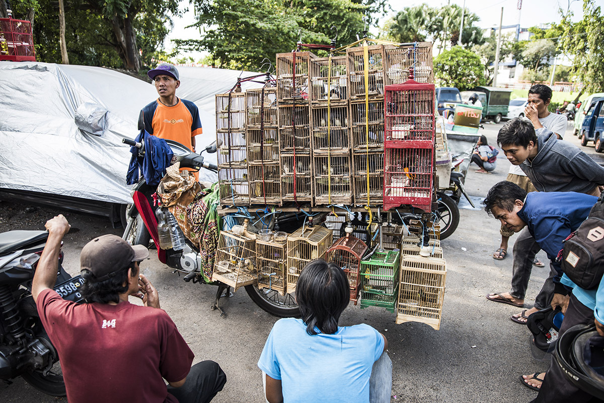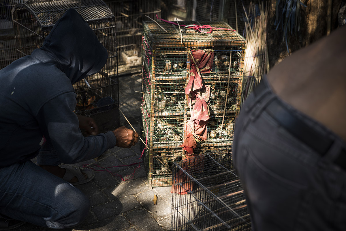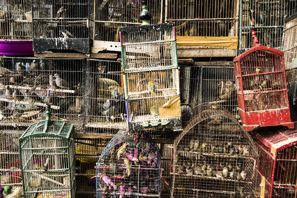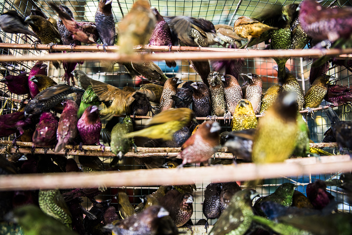 All kinds of animals can be found in the animal markets of Indonesia. These big galleries where animals are for sale are known as Pasar Burung – which means bird markets – and are very typical in some cities in the island of Java. In these places, the animals, which are packed together and treated poorly, await to be sold and taken to a home where they will be exposed. Although birds are the predominant animals, different species of mammals, reptiles and amphibians are also sold.